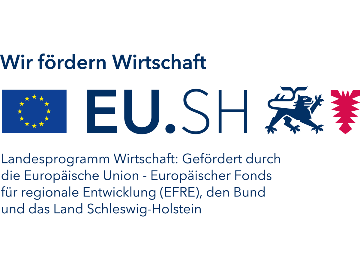 Das Projekt wird im Rahmen des Landesprogramm Wirtschaft unterstützt durch die Europäische Union - Europäischer Fonds für regionale Entwicklung (EFRE), den Bund und das Land Schleswig-Holstein gefördert.